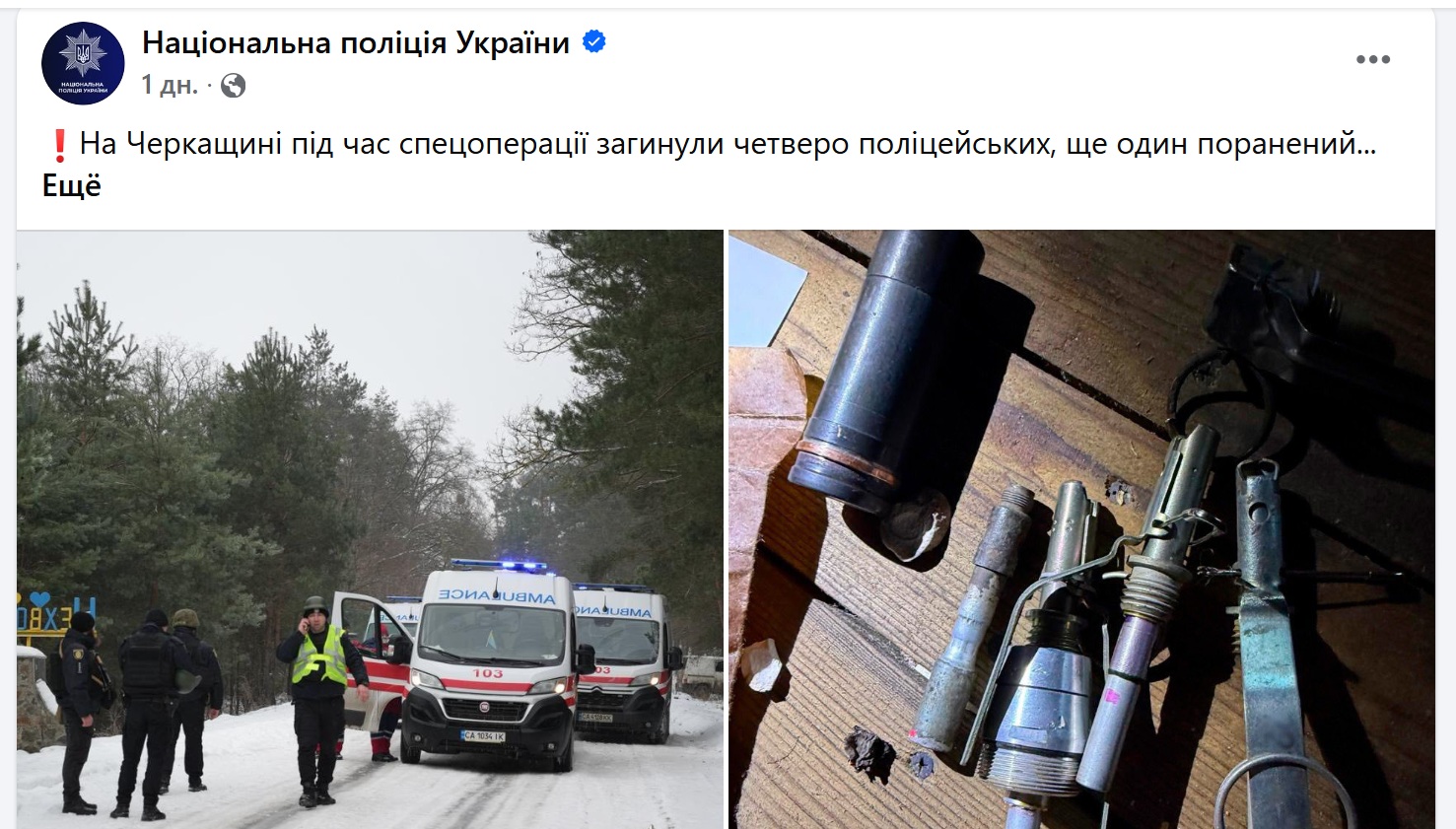 27 січня 2026 року в Черкаській області під час спецоперації загинули чотири бійці спецпідрозділу, ще один був поранений. Правоохоронці намагалися встановити причетність місцевого мешканця 1967 року народження до тяжкого злочину, вчиненого раніше. Побачивши поліцейських, чоловік утік до лісу, маючи при собі автоматичну зброю, і відкрив прицільний вогонь.
